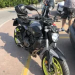 Visto che il cavaletto sui sassi non riuscirebbe a sostenere il peso della moto mettevo sempre sotto una tavoletta di legno ma Lunedì scorso ho messo il la piastra che potete vedere in foto, sabato mattina poi ho dovuto riposizionarla perchè andava troppo vicino alla macchina ma ora il tutto funziona a dovere.