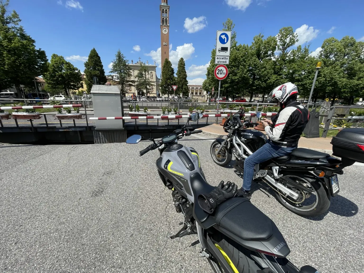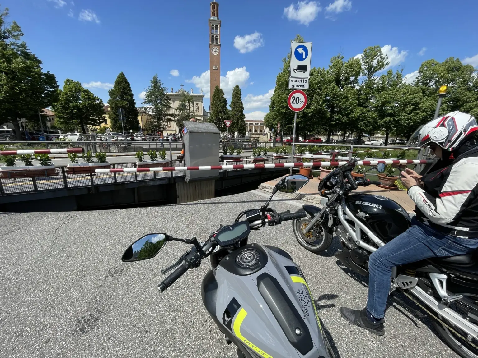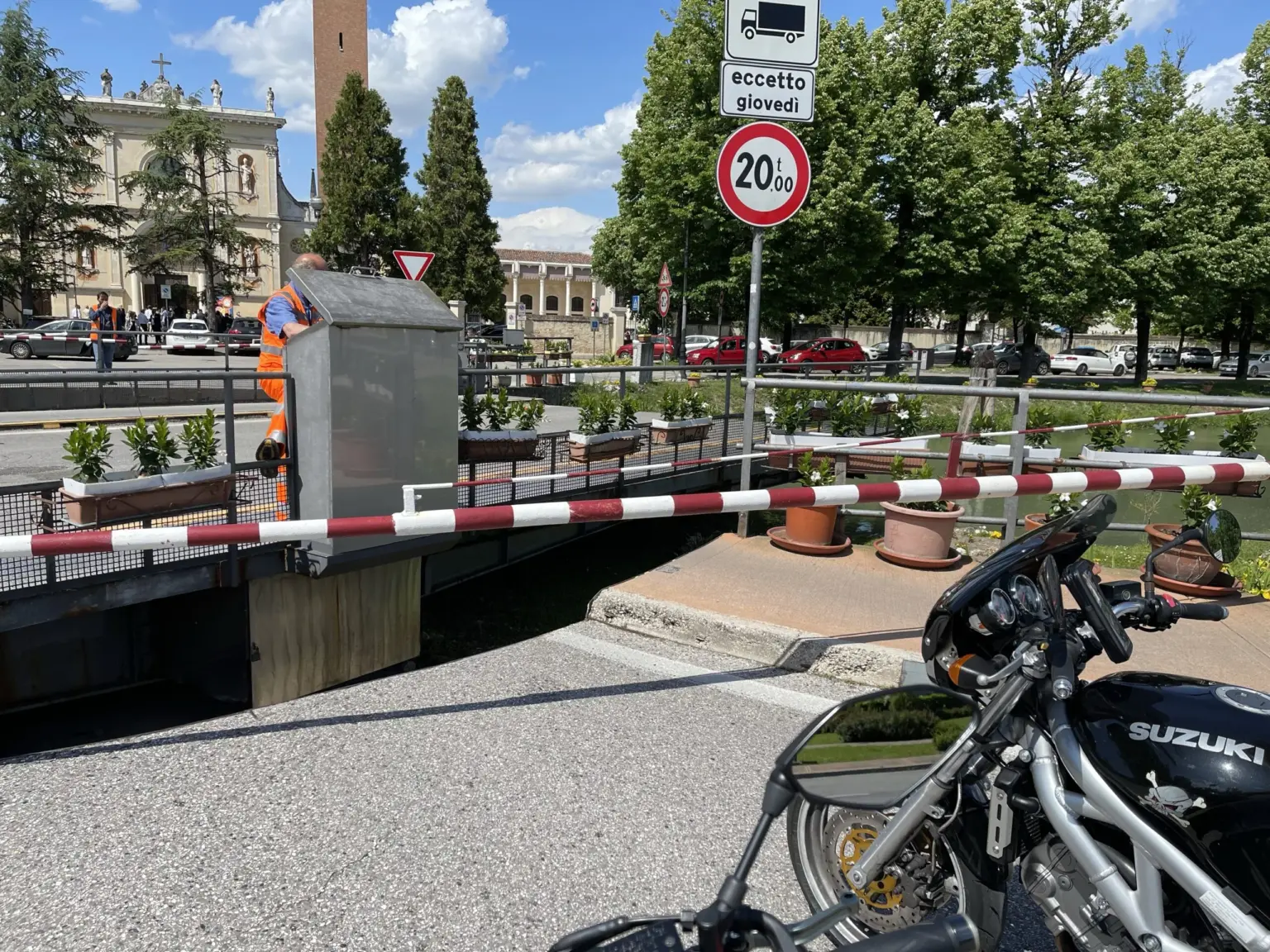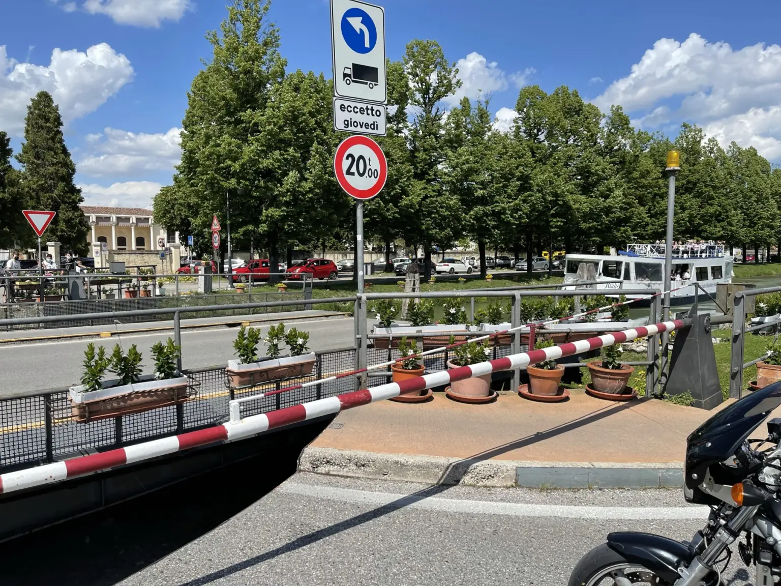 Arriva Emanuele e quindi si parte per la Nave de Vero attraversando la riviera del Brenta e passando per Mira dove ci si ritrova col ponte aperto.