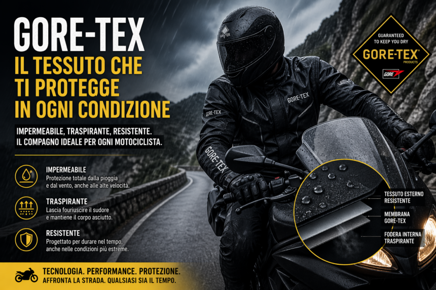 Il tessuto Gore-Tex è diventato uno standard di riferimento nell’abbigliamento tecnico da moto, grazie alla sua combinazione unica di impermeabilità, traspirabilità e resistenza. Sviluppato dall’azienda W. L. Gore & Associates, questo materiale ha rivoluzionato il modo in cui i motociclisti affrontano condizioni climatiche difficili, offrendo protezione senza compromettere il comfort.